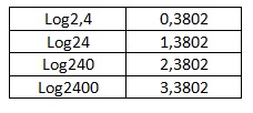 Exemplo: O log de 116 = 2, 0645 e o de 228 = 2,3579