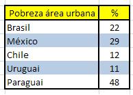 10) De acordo com a tabela abaixo, qual país apresenta a 2º menor porcentagem de pobreza em área urbana?